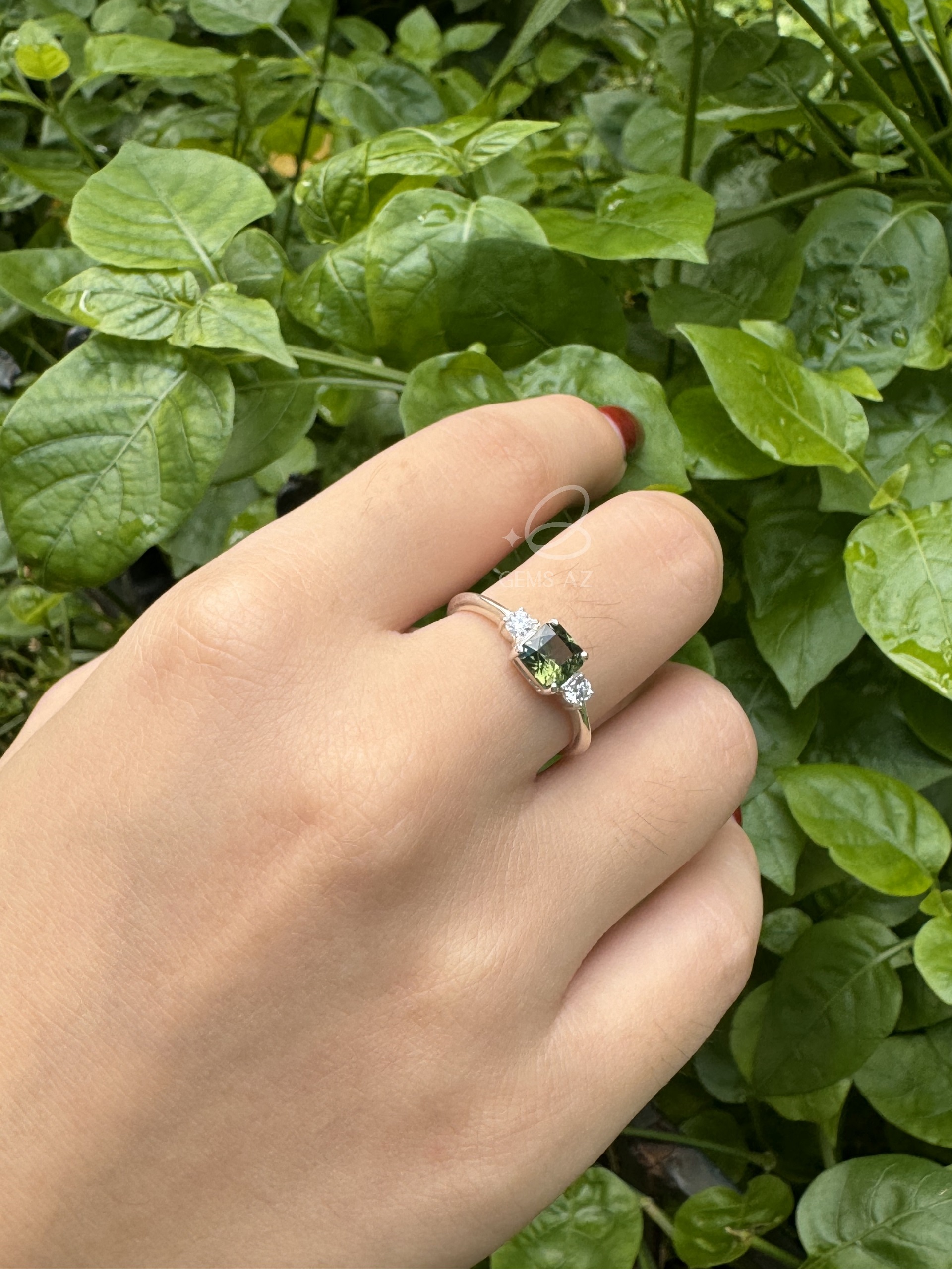 S0016-Nhẫn sen đá garnet xanh S925