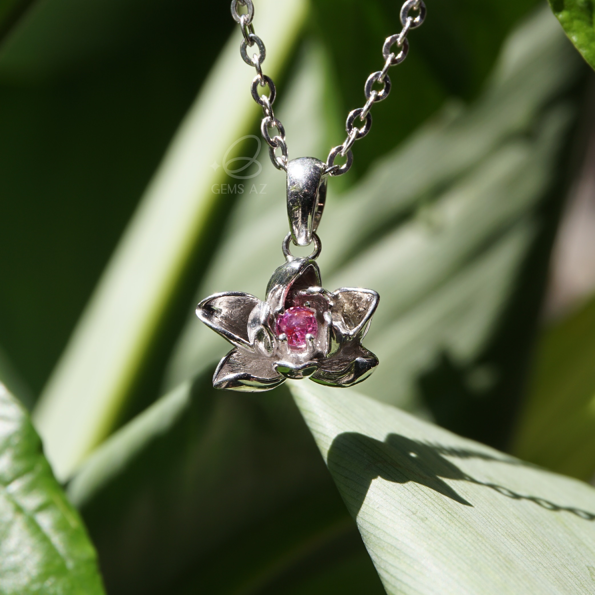 Mặt dây chuyền sen đá ruby, sapphire S925